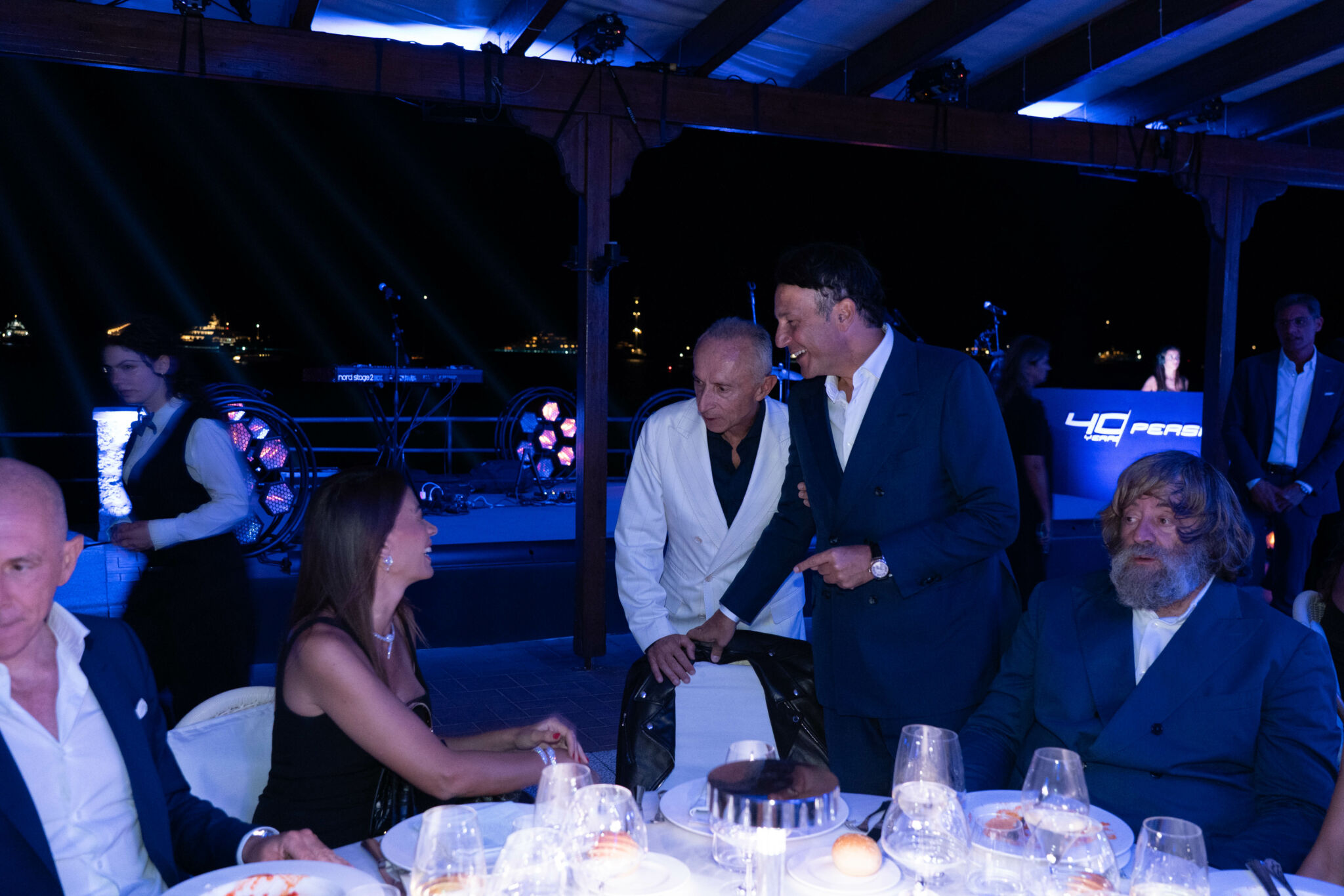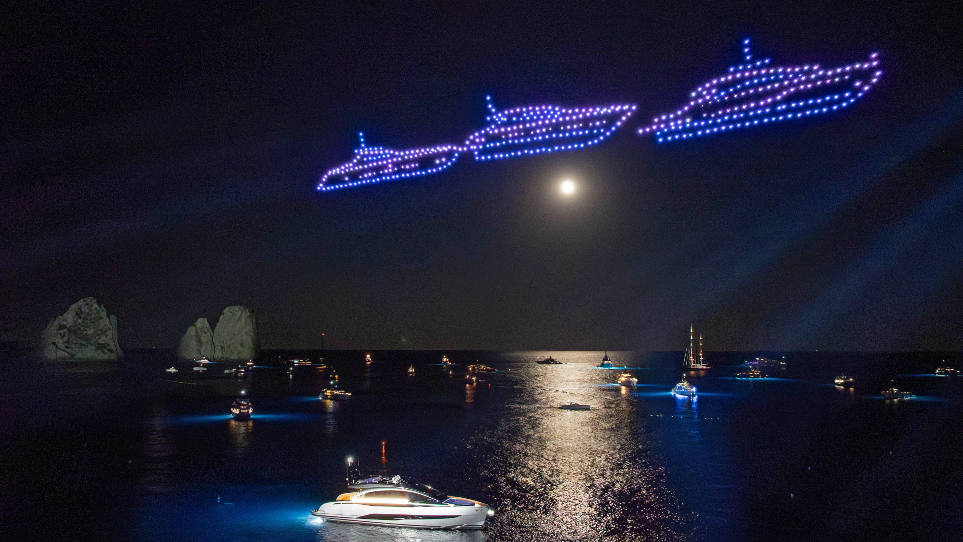 La prima serata si è aperta con un evento che ha lasciato il segno: la presentazione del nuovo Pershing GTX70, svelato con un light show orchestrato da 300 droni. Gli ospiti, riuniti sulla terrazza del leggendario ristorante La Canzone del Mare, hanno assistito a uno spettacolo tecnologico che ha illuminato il cielo sopra Marina Piccola. A rendere ancora più suggestiva l’atmosfera, la performance di Gianluigi Lembo, icona di Anema e Core, che ha portato la musica napoletana nel cuore della serata.
