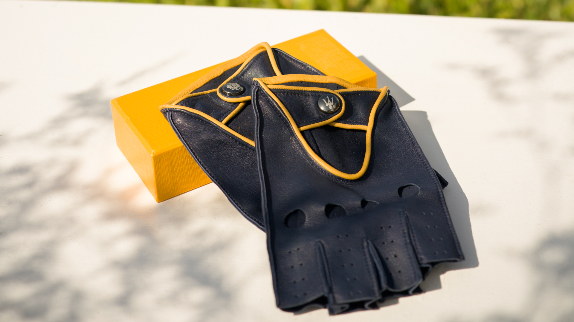 Oggetti discreti, essenziali, che rendono la guida un gesto raffinato. Il cuore della linea è il set Arte del Viaggio, prodotto in soli cento esemplari. Dentro la cappelliera Acqua di Parma si trovano il diffusore in edizione limitata, una ricarica di Luce di Colonia e un paio di guanti da guida in pelle nappa blu Maserati, con finiture in cadenino giallo. Leggeri, senza dita, con le nocche forate e la chiusura tono su tono lavorata al laser: sono un omaggio al piacere di sentire la strada, al contatto diretto con il volante, alla guida che diventa gesto estetico.