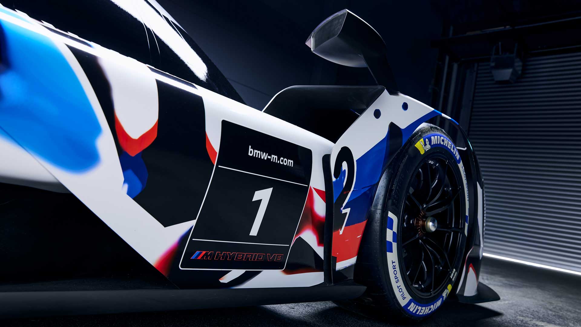 La texture camouflage, caratterizzata dai colori di BMW M, ossia l’azzurro, il blu e il rosso mescolati al bianco, è quella con cui la BMW M Hybrid V8 completerà i suoi test. Contiene infatti diversi elementi tratti da cinque decenni di storia delle corse automobilistiche in Nord America, con le immagini di auto da corsa come la BMW 3.0 CSL del 1976, la BMW M1/C del 1981, la BMW 320i Turbo del 1978, la BMW GTP del 1986, la BMW M3 E36 GTS-2, la BMW Z4 GTLM e la BMW M8 GTE.