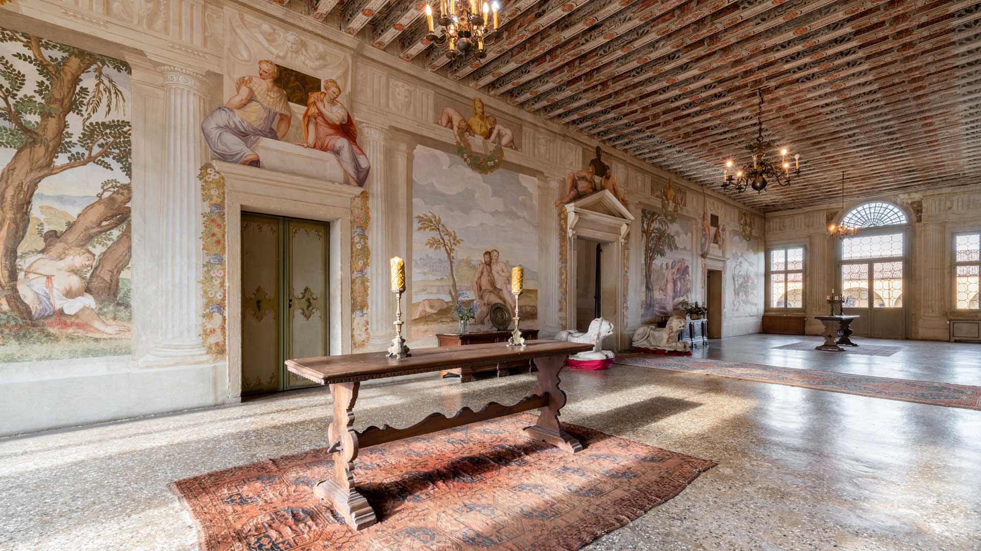 Considerata una delle più belle ville rinascimentali tra l’entroterra veneziano e Padova, la proprietà presenta un prestigioso salone nobile con una serie di affreschi del Cinquecento a opera di Paolo Veronese, Giambattista Zelotti e Antonio Fasolo. Gli eleganti stucchi del Settecento e la pavimentazione originale sono elementi perfettamente conservati che aumentano il fascino della proprietà.