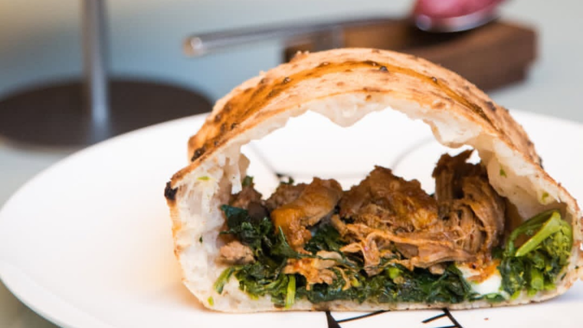 La formula di degustazione, oggi disponibile con cinque o sei portate e dolce opzionale, è richiesta dalla maggior parte degli ospiti, grazie alle ricette che seguono le stagioni e cambiano frequentemente, portando a tavola sempre qualcosa di nuovo, anche per chi torna più volte nello stesso mese. Come la pizza fritta che apre il menu, da mangiare con le mani in un doppio morso, con il suo ripieno di prosciutto cotto, salame e ritagli di carne, servita con demi-glace di pollo.