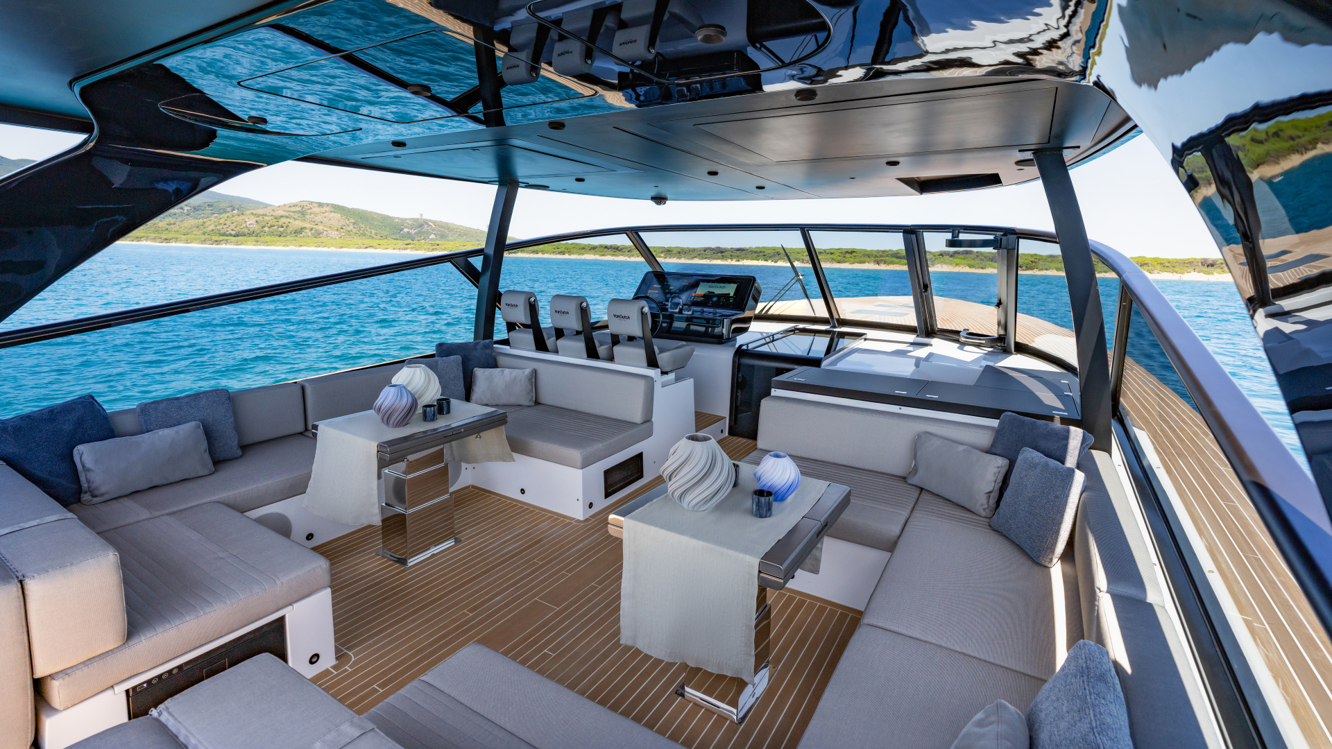 Il VanDutch 75, prodotto da Cantiere del Pardo, porta la firma tecnica di Mulder Design e lo stile di Burdissocapponi Yachts & Design. Amplia l’icona minimalista del brand in una nuova dimensione di lifestyle: lo scafo, privo di aperture, è integrato all’interno con monitor che fungono da oblò, donando luce e respiro agli ambienti senza compromettere la purezza delle linee.