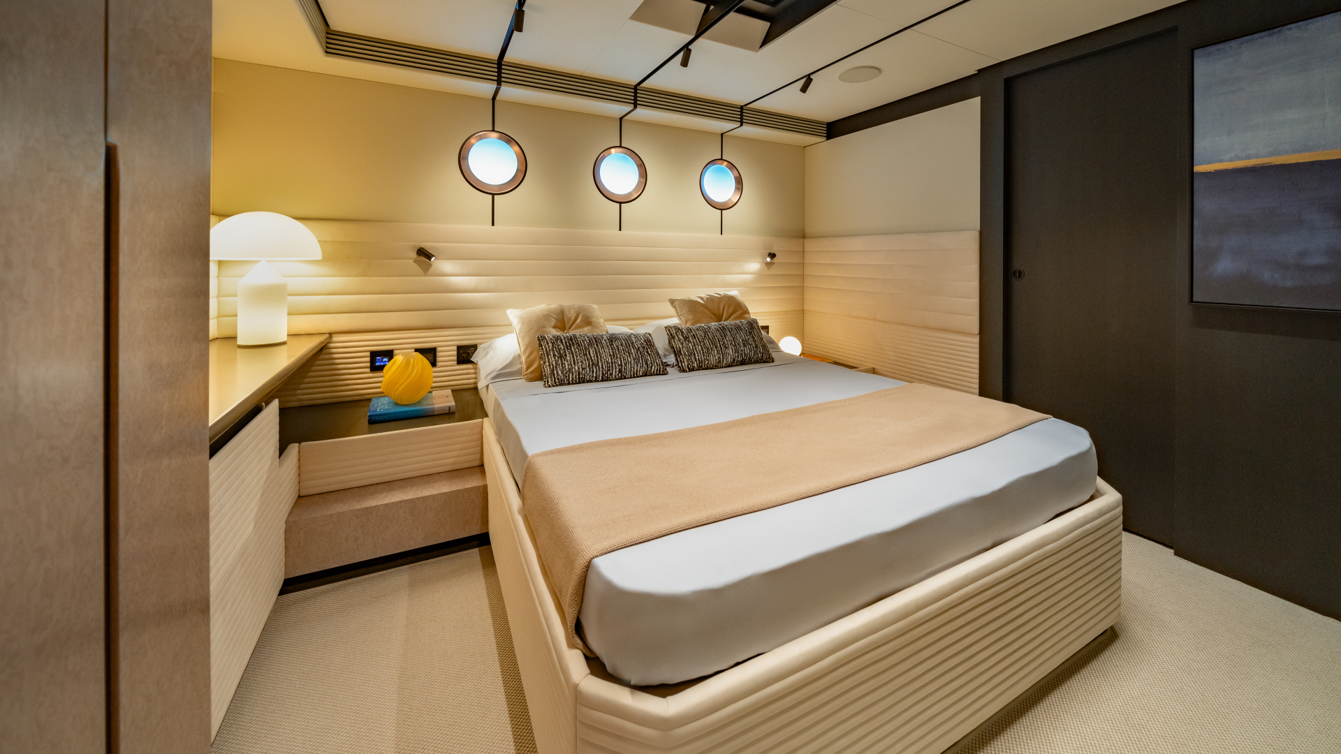 Il debutto del Benetti Class 44M “Juno’s 7” segna invece l’inizio di una nuova generazione nella gamma in vetroresina. Con i suoi 44 metri, beam di 9,16 e interni distribuiti su quattro ponti, offre ampie possibilità di personalizzazione, fino a includere una sesta cabina VIP aggiuntiva sull’Upper Deck.