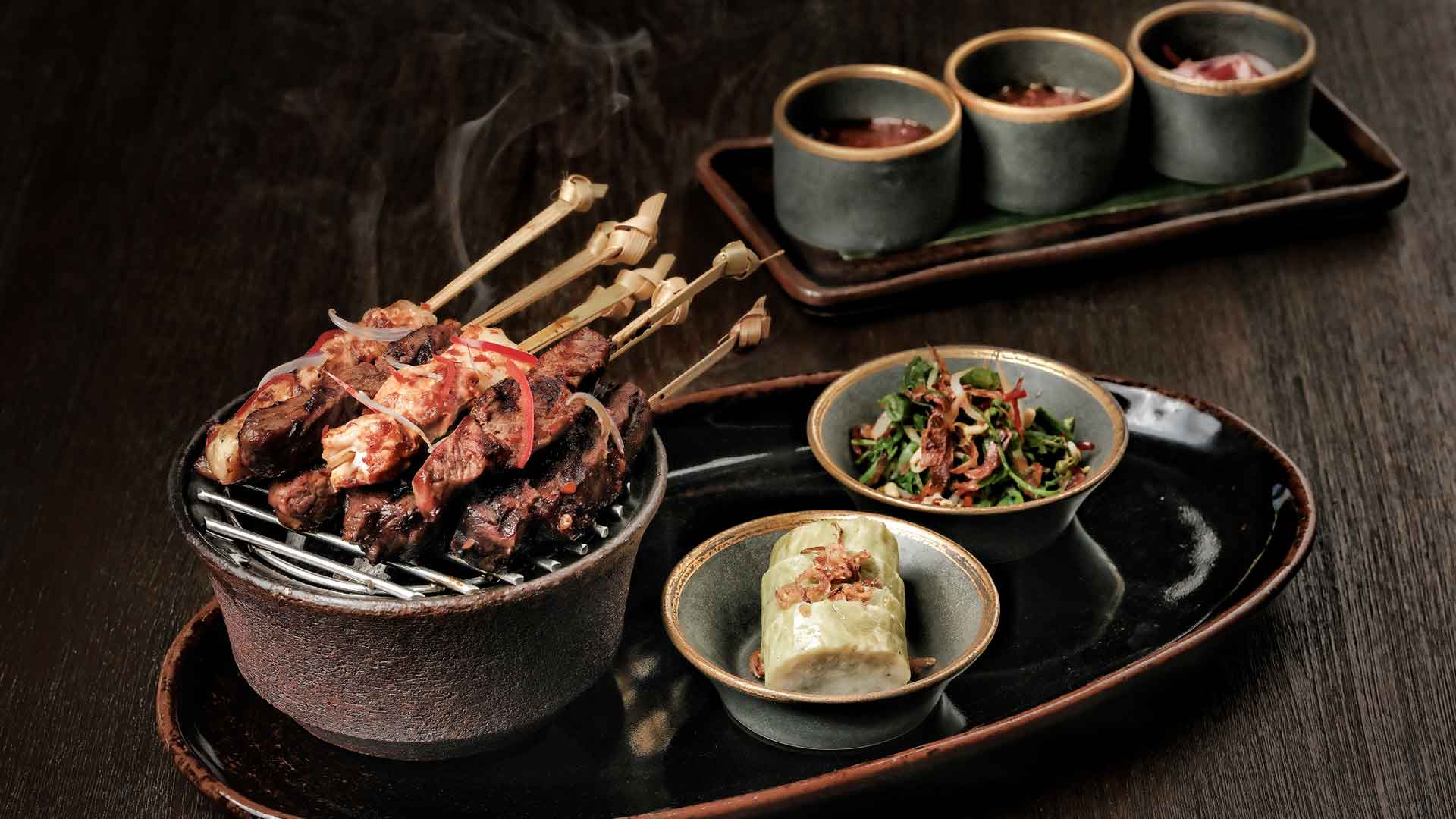 L’offerta enogastronomica è ricca e parte dal fine dining Rumari, guidato dallo chef Gaetan Biesuz, che unisce la tecnica francese agli ingredienti locali, proponendo un menu degustazione ricco di suggestioni, raccontate dai ogni membro della brigata di cucina e del team di sala. Il menu è un viaggio in otto portate, legate ad altrettanti luoghi emblematici dell’Indonesia e arriva a tavola sottoforma di un origami, svelando un percorso che parte da sapori delicati, per diventare sempre più intenso e ricco di spezie. Come un’insalata di granchio di Sumatra e mango con granita di ginger flower, i nervetti di maiale aromatizzati in un brodo di pepe di Bali, serviti con una salsa creata a partire dal consommé e un chawanmushi di gamberi di fiume e curry.