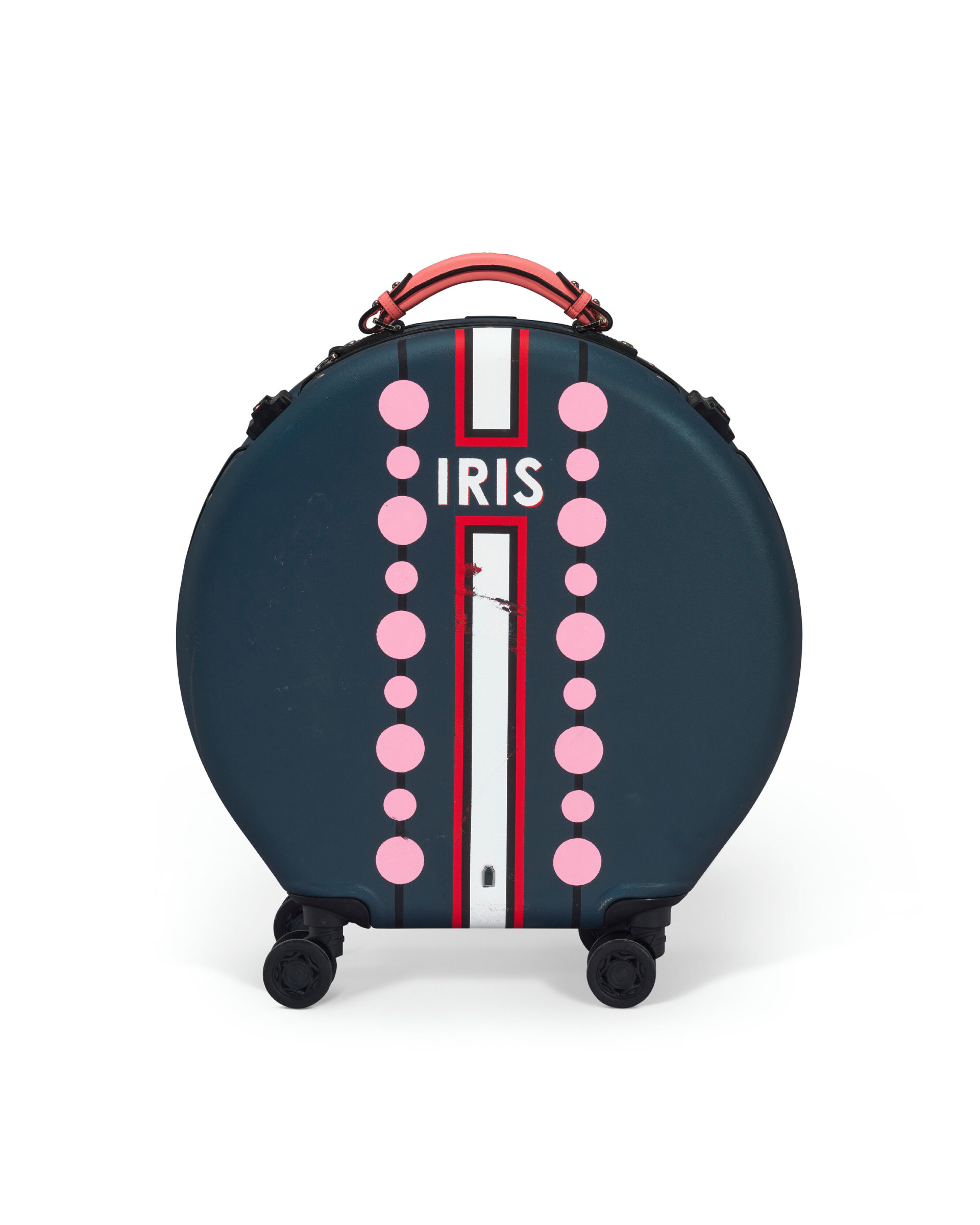 Fra i lotti di pittura, infine, diversi ritratti di cani simili al suo barboncino, come quello del Maltese con il collare di pom pom rosso imitazione Carl Reichert (stimato fra i 480-760€). Per i cultori del mito personale, che vogliono vestire come lei con budget di spesa più limitati, è imperdibile il lotto che comprende ben diciotto montature per occhiali Iris Apfel X Zenni multicolor e con motivi (con una stima molto abbordabile a partire da 380-570€), assieme ai diversi lotti di anelli e bracciali di plastica raggruppati per colori e stili diversi – come quello di cinque braccialetti istoriati a mano e lucenti (stimati 190-290€). Piccola e imperdibile è anche la valigia da viaggio policroma e dipinta a mano con il nome Iris ricamato a stampatello (stimata fra i 290-480€) prodotta per lei da Ookkon Modern.