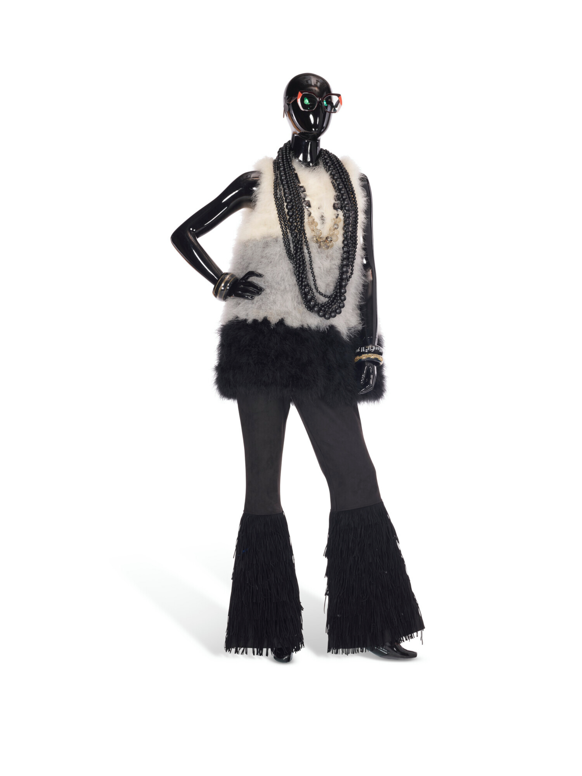 Scopo del catalogo è celebrare l’approccio unico alla vita e alla moda della Apfel, oltre all’individualità che in epoca di bellezze Instagram tutte uguali e profondamente stereotipate, appare brillare in tutta la sua assoluta unicità. Tra gli highlights del catalogo, imperdibile il cappotto di Dior Haute Couture con piume di struzzo (stima $800 – 1.200); l’abito camicia e gonna lunga rosa, rosso giallo e di Carolina Herrera a colori compatti (stima: $800-1.200); il cappotto in lana mohair color avorio decorato di elegantissime piume di struzzo nere di Krizia (stimato fra i $200-300).