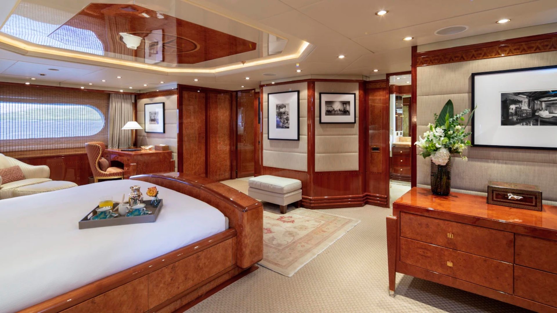 Dopo un refit significativo, Emir è oggi una delle opzioni più versatili del mercato: può accogliere fino a 28 ospiti in 14 cabine e si sviluppa su sei ponti. Ideale per eventi o grandi gruppi, offre un cinema, una palestra all’aperto e una suite armatoriale full-beam con un walk-in closet da sogno.