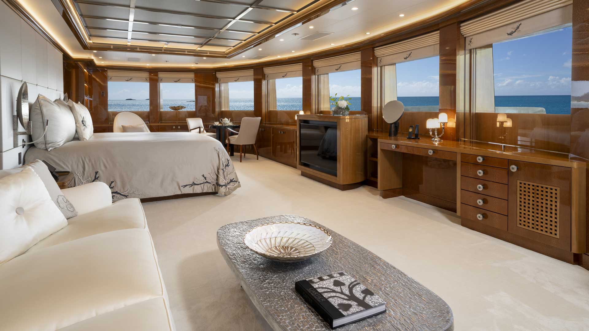 Sottoposta a un importante refit nel 2024, Luna può accogliere fino a 12 ospiti in 7 cabine, assistiti da un equipaggio di 30 persone. Le vetrate cielo-terra amplificano la luce naturale, regalando interni straordinariamente luminosi. La suite armatoriale dispone di uno studio pensato per lavorare in un’atmosfera di calma e benessere, oltre a un’area esterna privata con una grande jacuzzi.