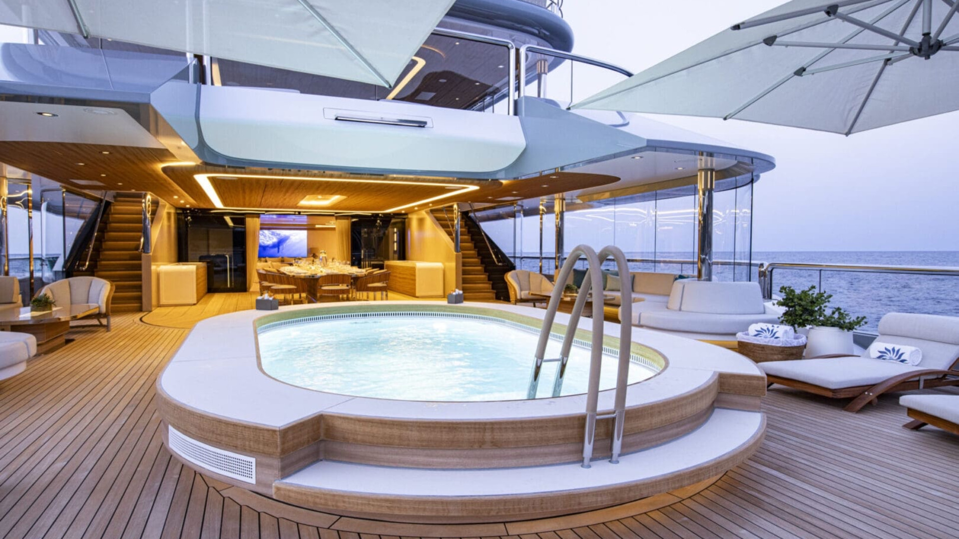 Linee eleganti e volumi generosi caratterizzano Mimtee, che ospita 12 persone in 6 cabine. A bordo, il comfort è garantito da una palestra completa, una jacuzzi panoramica, un hammam, una sala massaggi e un beach club sul livello del mare. Un’esperienza pensata per vivere il relax in totale connessione con l’ambiente circostante.