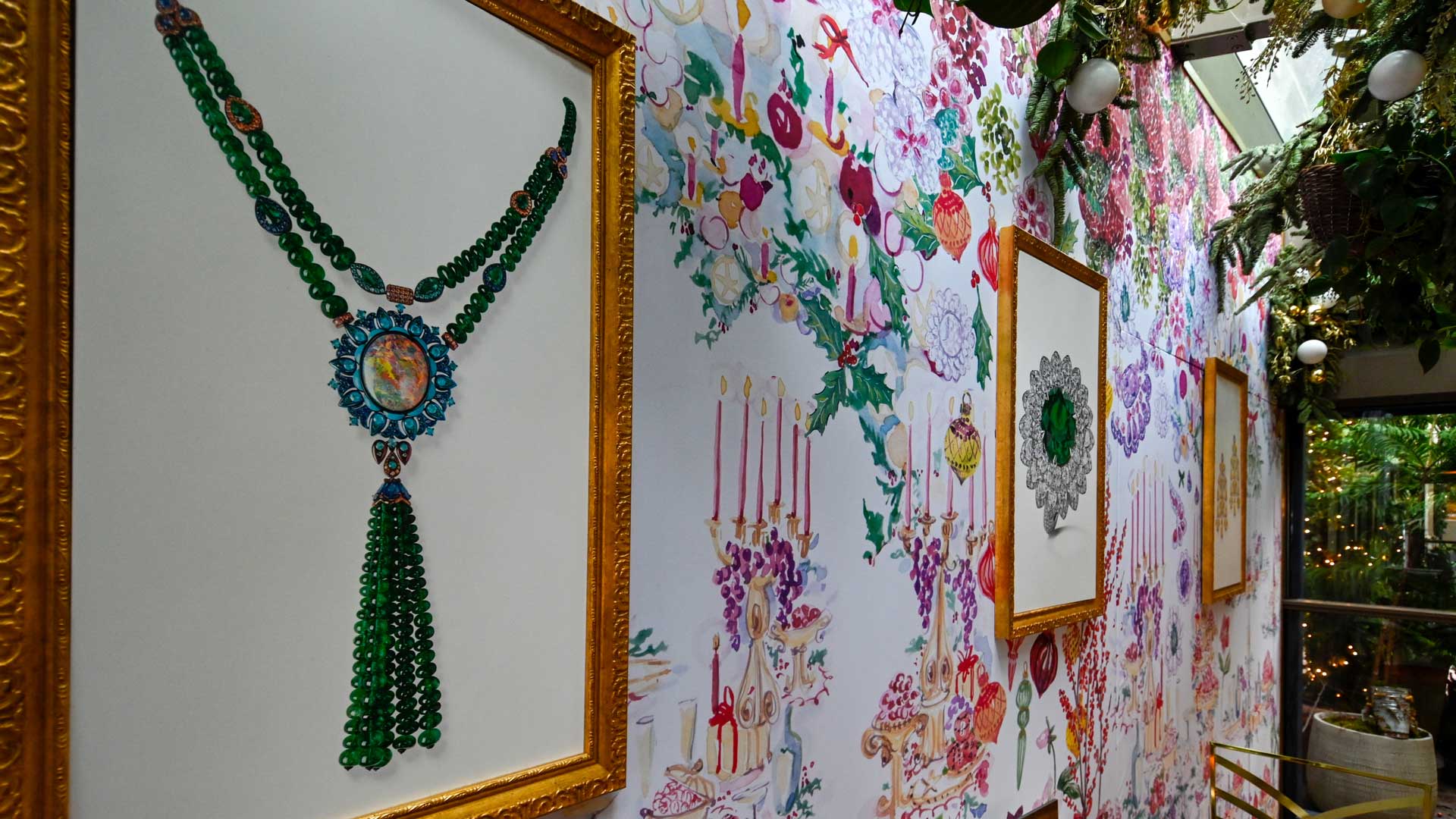 Anche il soffitto assume le sembianze di un albero di Natale, decorato rami di pino adornati di palline di cristallo nei toni dell’oro e del bianco. Alle pareti, continuano a essere esposte le immagini dei gioielli più preziosi di Chopard. Per prendere ispirazione per un esclusivo regalo di Natale last-minute.