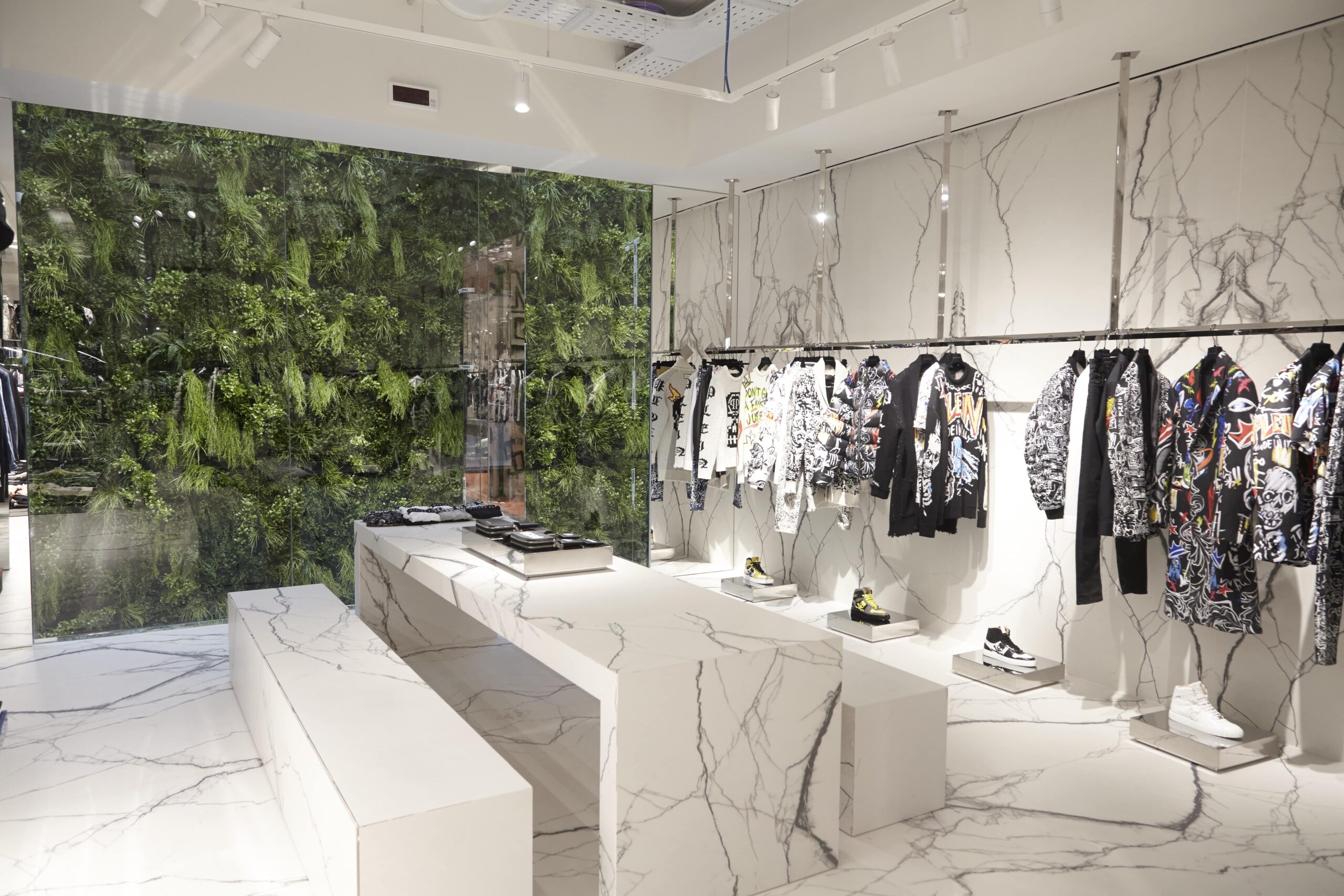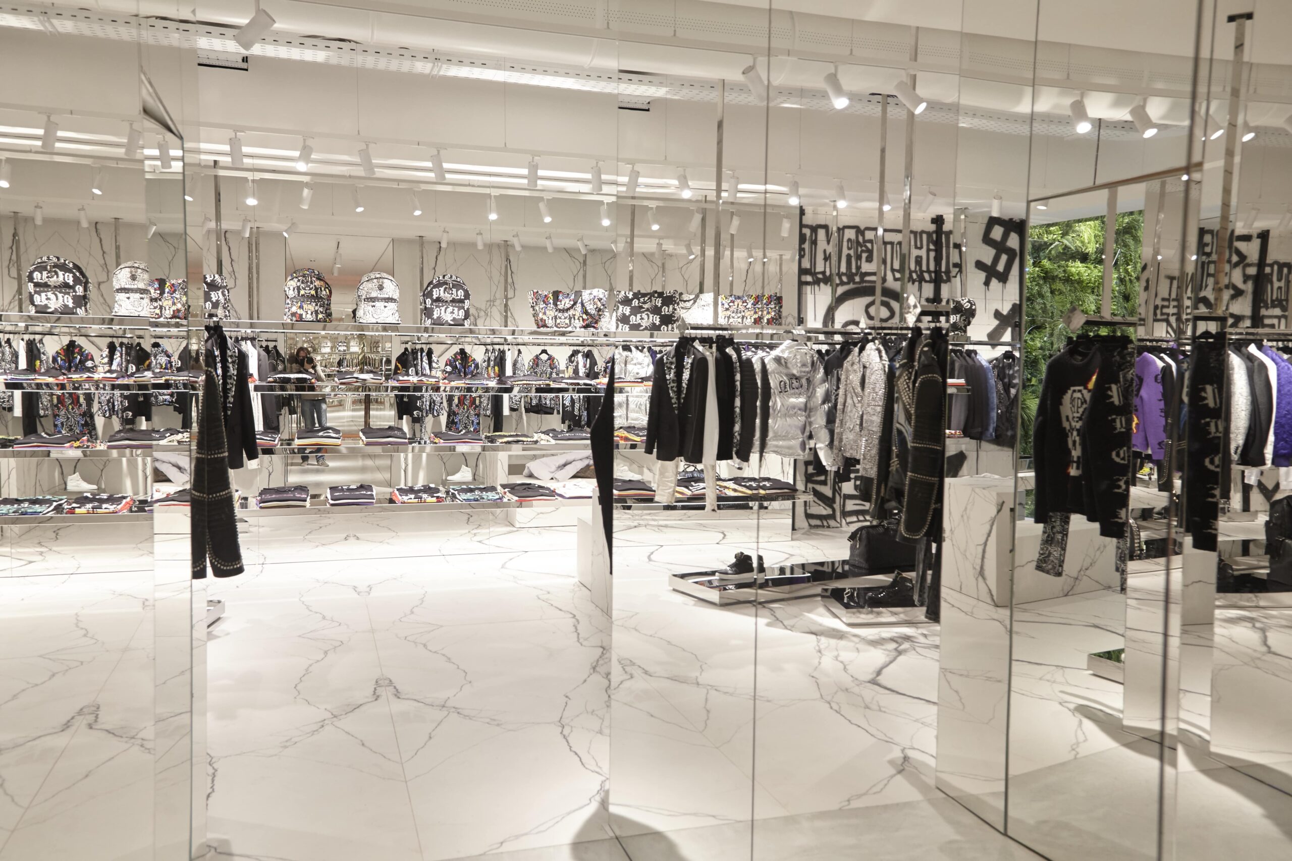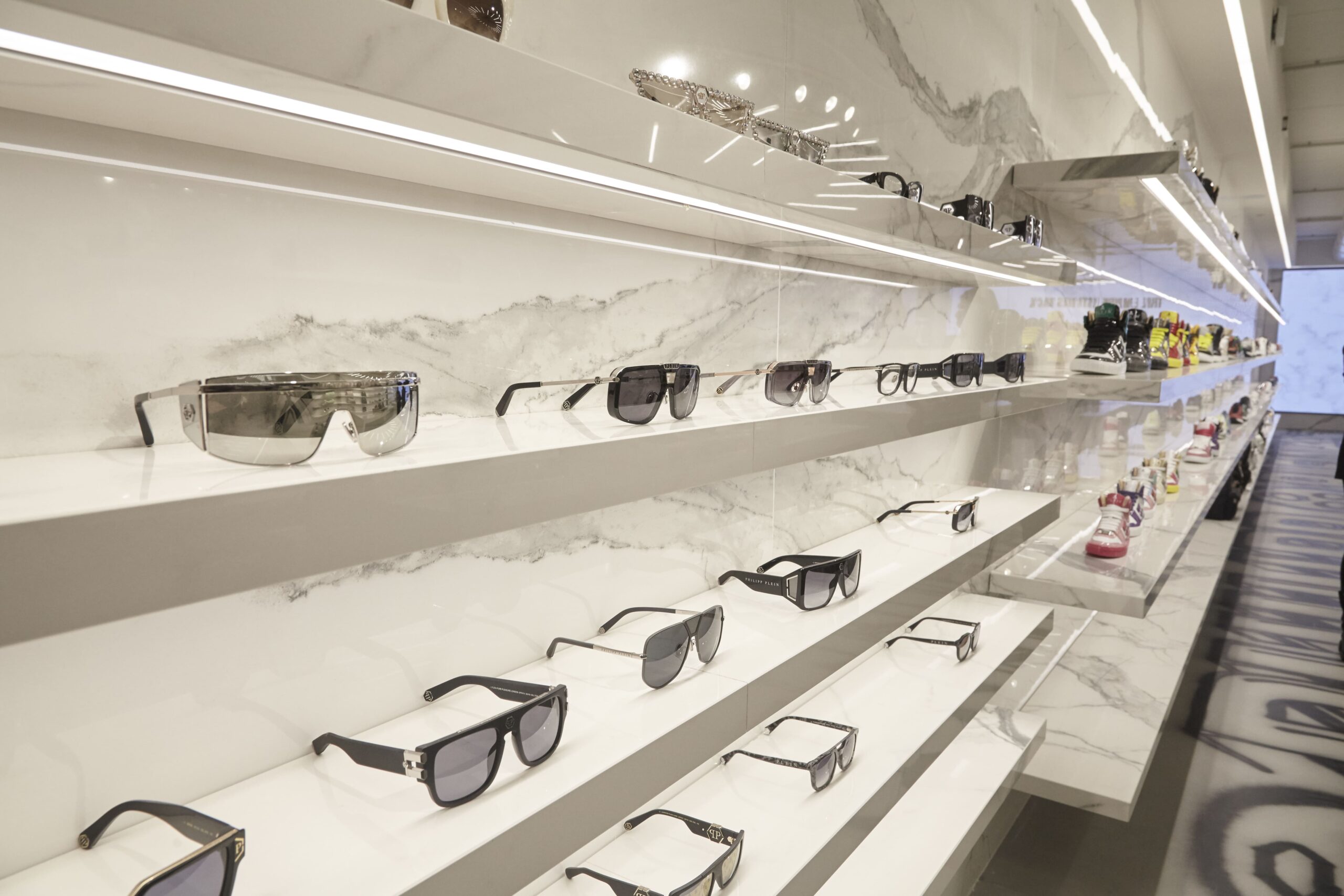 Al piano seminterrato, si incontra la prima area espositiva di circa 220 mq, con all’interno la press room, gli uffici operativi e soprattutto il bistrot, un ambiente totalmente green dove è possibile trascorrere momenti di puro relax rapiti dal riflesso del verde delle pareti. Cuore pulsante dello showroom di Philipp Plein è il piano terra, spazio dove si trovano le aree espositive dedicate a donna, uomo, oltre al denim e al marchio Billionaire.