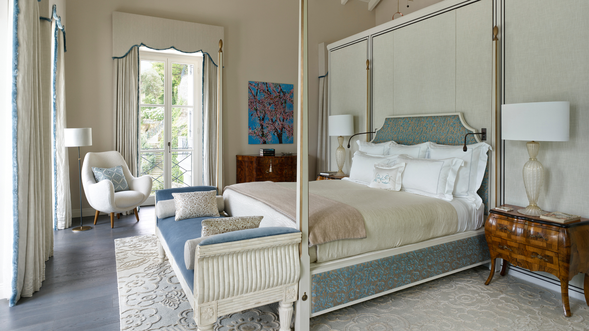 “L’artigianato italiano ha svolto un ruolo fondamentale in tutto il progetto, con maestri che hanno messo a disposizione la loro abilità rafforzando la continuità con il patrimonio locale”. La collaborazione con marchi prestigiosi come de Gournay, Fortuny Textiles, Mirei Monticelli e Rupert Bevan contribuisce poi a imprimere ulteriore charme agli ambienti, sempre percorsi da richiami alla storia personale dei componenti della famiglia. “Uno degli elementi che amo di più è il soffitto dello studio della cliente, dove abbiamo reinterpretato il motivo e i colori del suo abito preferito di Dolce&Gabbana. È un tocco estremamente intimo, un’espressione di personalità”, prosegue Philippa Thorp.