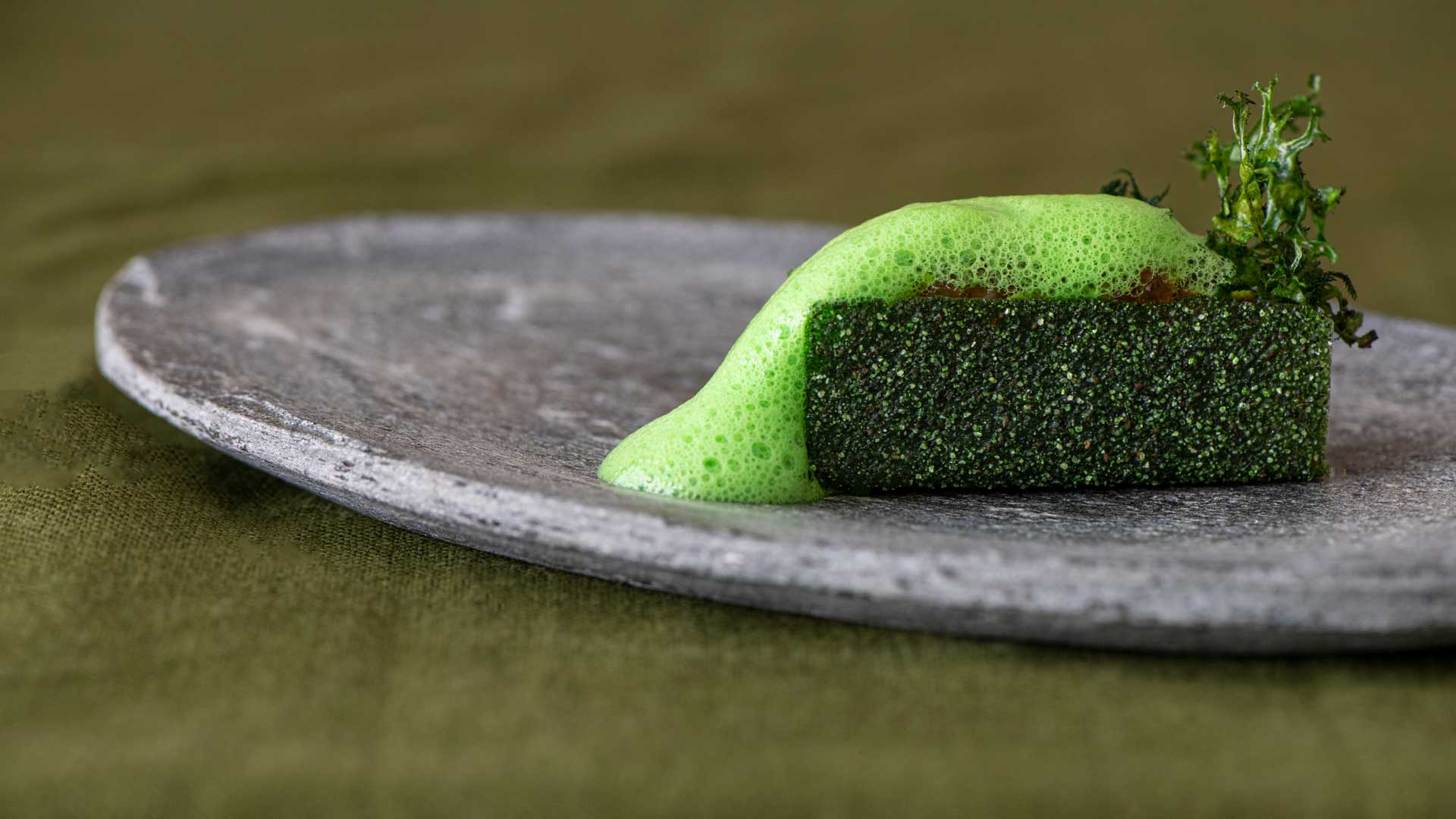 Dal lago poco distante da Terra The Magic Place arrivano anche il salmerino, accompagnato da latte bruciato, grano saraceno, pimpinella e olio d’aglio orsino e la Trota, marinata con muschio e uovo disidratato. Per gli amanti della carne è presente in carta il Vitello cotto nel fieno, glassato al tè rosso, olio al ginepro nano e miglio stufato.