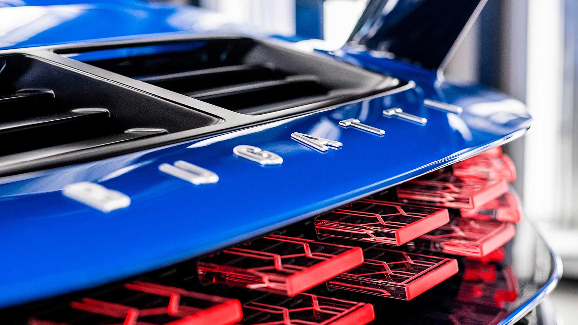 Dopo un lungo periodo di sviluppo, una delle 10 unità previste della Centodieci è stata consegnata al primo cliente. Si tratta di un esemplare che propone l’iconica tinta blu che richiama quella dell’EB110 originale. La base tecnica è quella della Chiron, tuttavia i progettisti hanno rivisto completamente la carrozzeria, andando a riprendere alcuni degli stilemi presenti in origine come le prese d’aria posizionate dietro i finestrini.