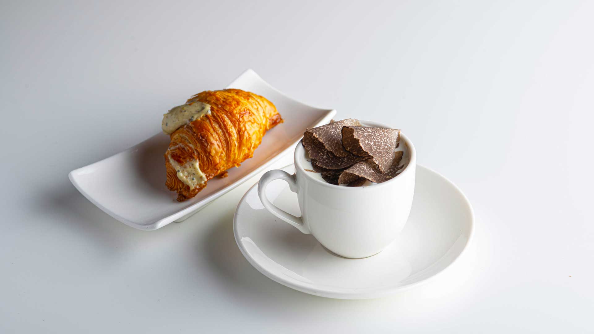 Incredibile il caffè latte accompagnato da un cornetto ripieno di besciamella al tartufo Melanosporum, mentre i primi sono stati due. Un risotto con cavolfiore e guanciale e una crespella, entrambi serviti con tartufo Bianco Pregiato. Infine, il piccione alla Rossini si è trovato nel piatto con un carosello di tartufi e il dessert ha avuto come protagonista il tartufo Brumale, dal gusto intenso.